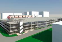 Jedná se o novostavbu nemocničního vícepodlažního parkoviště pro personál nemocnice, které bude mít 3 podlaží. Věž sloužící jako svislá komunikace a technická budova bude mít 4 podlaží. Nad parkovištěm je betonová střecha, nad kterou je osazený heliport a přístupová spojovací chodba ve formě tubusu. Heliport je určený pro provoz letecké záchranné služby (viz letecká studie). Přístup na heliport zajišťuje nadzemní chodba (tubus), která je napojená na objekt “věže”, kde je možné poskytnout první pomoc a následně pokračovat s pacientem nadzemní chodbou (most nad areálovou komunikací) do objektu Infekce.